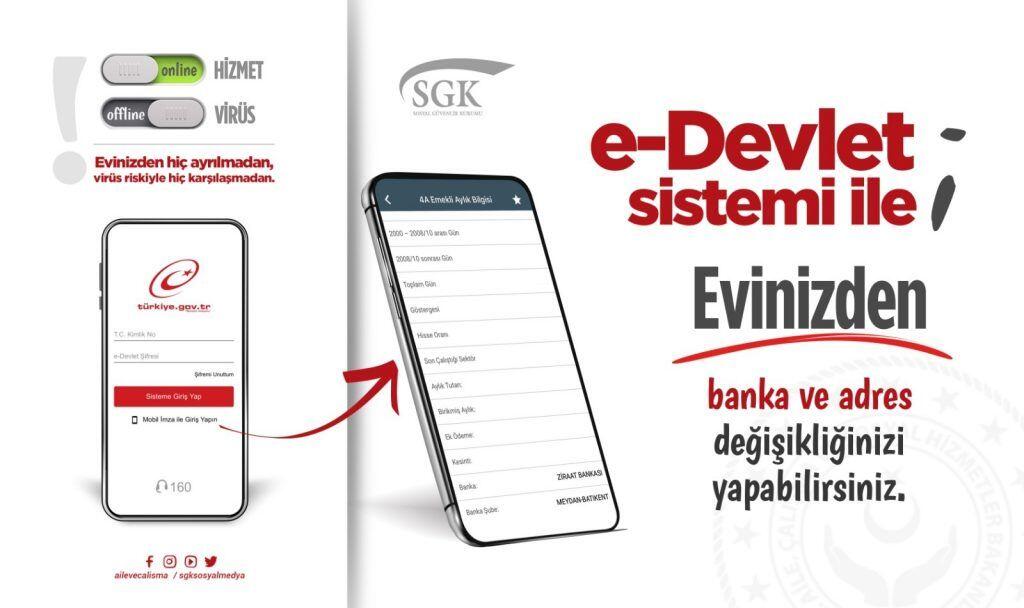 Özellikle yüksek risk grubundaki yaşlılar için elektronik ortamda işlemler genişletildi. Maaş promosyonu dönemi olduğu için artan banka değişikliği başvuruları e-Devlet’ten yapılabilecek.