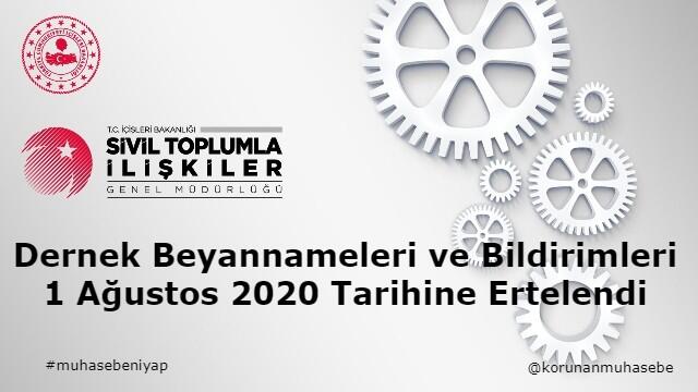 Dernek Beyannameleri Ertelendi Nisan sonuna kadar olan beyan ve diğer bildirimler 1 Ağustos 2020 tarihine kadar geçici olarak ertelendi.... 04 Nisan, 2020
