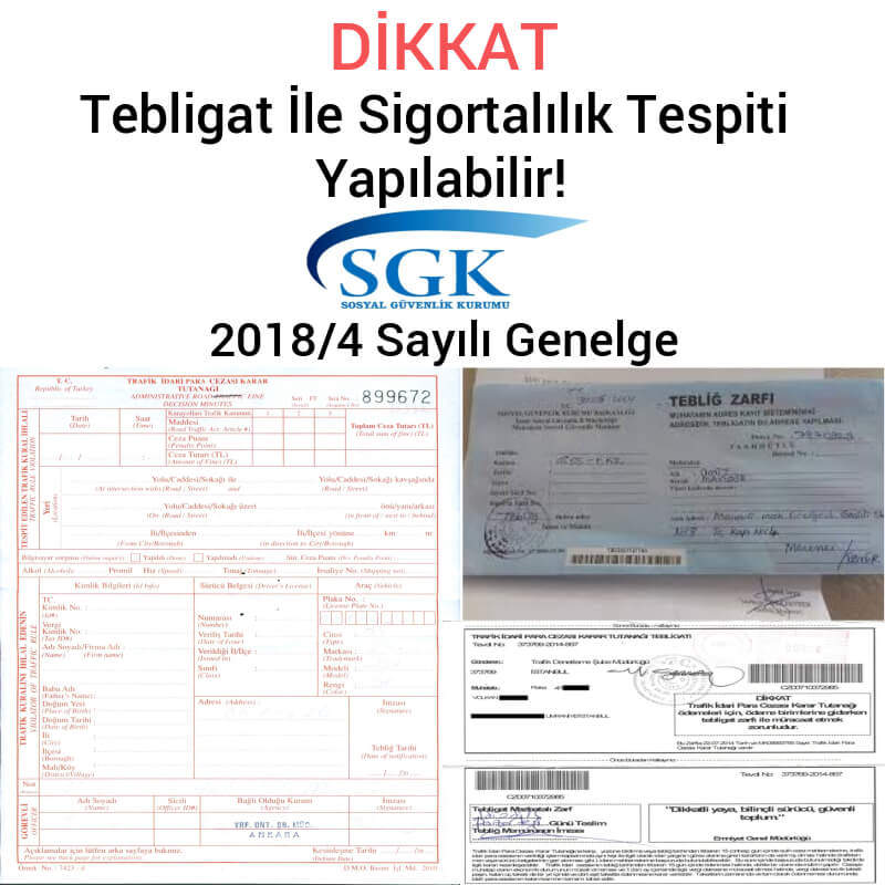 Tebligat İle Sigortalılık Tespiti Yapılabilir! PTT memurlarınca yapılan tebligatların, 7201 sayılı Kanuna uygun olarak yapıldığının ve işyerine tebliğ edilen mazbataların üzerine "işyeri çalışanı”, "işyeri daimî çalışanı", "görevli sekreter” gibi ibarelerin yazıldığının tespiti halinde bu bilgi ve belgeler uyarınca tebligatın teslim alındığı tarih için, tebligatı alan kişi adına re 'sen sigortalılık tescili...