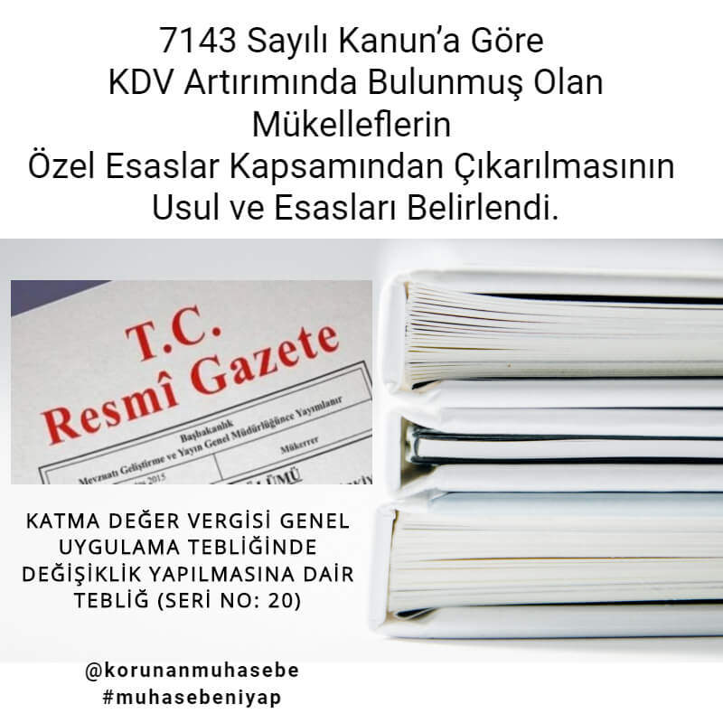 Kdv Matrah Artırımında Özel Esaslardan Çıkış Aralık 2017 ve öncesi vergilendirme dönemlerine ilişkin olarak haklarında Katma Değer Vergisi Genel Uygulama Tebliği kapsamında; Sahte belge veya muhteviyatı itibarıyla yanıltıcı belge kullanma olumsuz raporu ile Sahte belge veya muhteviyatı itibarıyla yanıltıcı belge kullanma, Beyanname vermeme, Adresinde bulunamama, Defter ve...