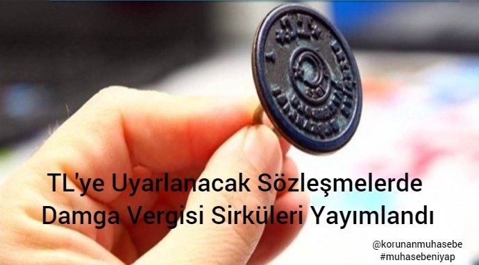 Gelir İdaresi Başkanlığınca, Türk Parasına uyarlanacak sözleşmelerde damga vergisine ilişkin 22/11/2018 tarihli ve 22 sayılı Damga Vergisi Sirküleri yayımlandı. 1) Damga vergisi ödenmeyecek haller 85 sayılı Cumhurbaşkanı Kararı kapsamında döviz cinsinden düzenlenmiş olan sözleşmelerin bedellerinin Türk Lirası (TL) olarak yeniden belirlenmesine ilişkin düzenlenen kağıtların; Sözleşmelerin diğer maddelerinde (taraf,...