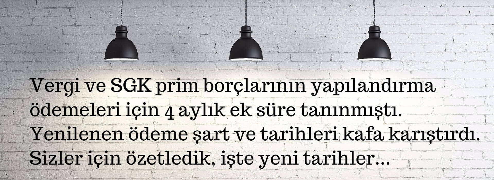 Vergi ve SGK prim borçları için yapılandırma imkanı sağlayan 6736 Sayılı Yeniden Yapılandırma Kanunu kapsamındaki yapılandırma taksit ödemeleri için 4 aylık ek süre tanınmıştı. Yenilenen ödeme şart ve tarihleri kafa karıştırdı. Sizler için özetledik...