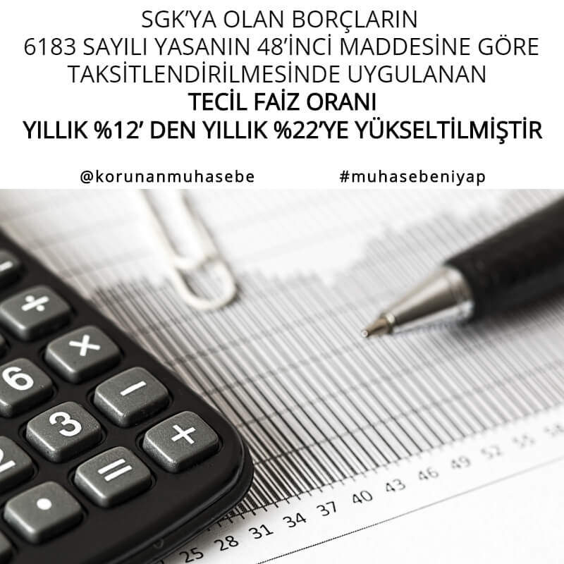 Sgk Taksitlendirme Faizi Artırıldı İşverenlerin Sosyal Güvenlik Kurumuna olan borçlarını 6183 sayılı Amme Alacaklarının Tahsil Usulü Hakkında Kanunun 48’inci maddesi gereği taksitlendirmelerinde uygulanan tecil faizi oranı 06.09.2018 tarihinden itibaren yıllık %12‘den yıllık %22’ ye yükseltilmiştir. Bilindiği üzere, 6183 sayılı Amme Alacaklarının Tahsil Usulü Hakkında Kanunun 48 inci maddesine göre SGK’ ya...